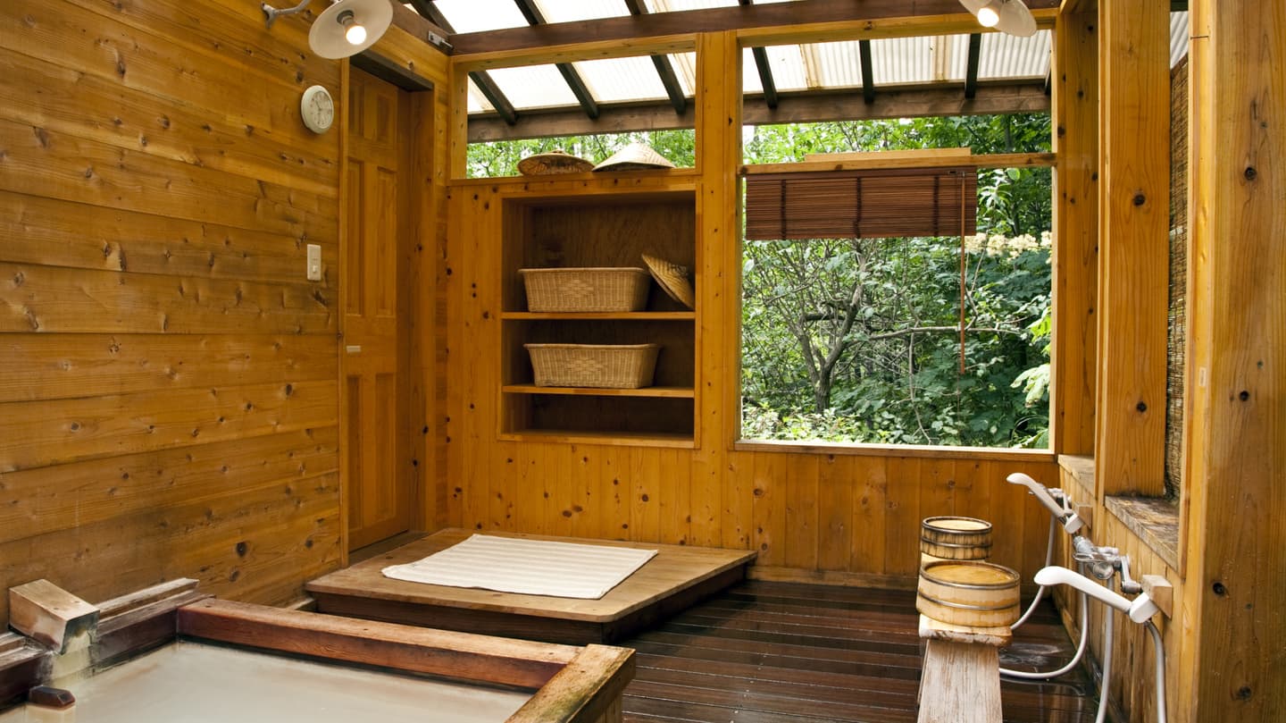 少し広めの湯舟の内湯と開放感のある広めの露天風呂、小春の湯。