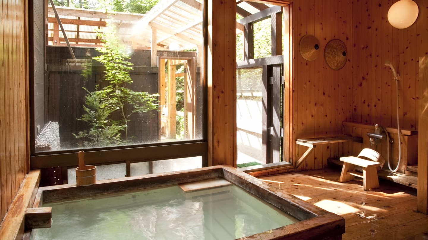 ※冬は外湯だけでは入りにくいので、2つの貸切風呂となります。